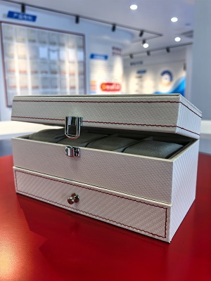 Moderne koolstofvezel en esthetische stiksels: De witte opbergserie is voorzien van onze strakke koolstofvezeltexturen. Gecombineerd met ons vermogen om leer te leveren dat compatibel is met contrastrijke rode stiksels, komen deze materialen tegemoet aan de moderne, sportieve en luxe esthetiek die wordt gevraagd door de horloge- en sieradenverpakkingssector.